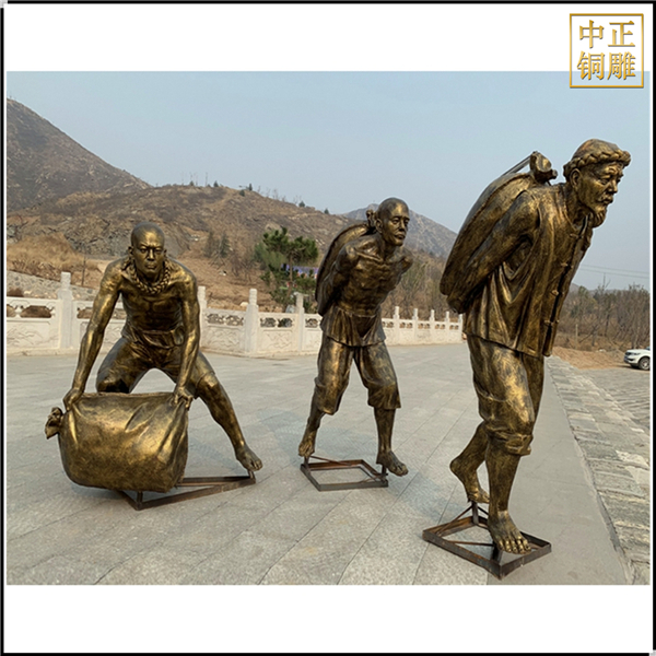 中正銅雕-戶外搬運工人物銅雕塑、戶外搬運工人物銅雕塑價格、戶外搬運工人物銅雕塑廠家,我公司集科研、開發設計、普通鑄造、一次性整體澆鑄、精密鑄造于一體。本公司技術力量雄厚,設備,不但重視中國青銅器原有的藝術風格,還繼承了文物原有的藝術品味,在繼承和發揚古老文化的同時,更深一步為新老客戶定身量制各種銅制、鐵制工藝品等產品,曾多次受到寺廟長老和美術學院教授的好評。
